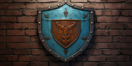 A medieval shield showcased against a dark backdrop. AI