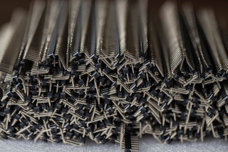 Macro Shot of Long Straight PCB Connectors or Terminal Blocks Placed Bulk Over White. Horizontal image