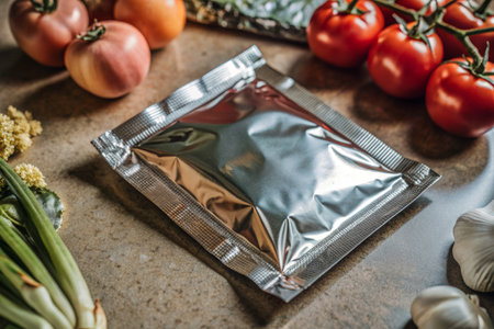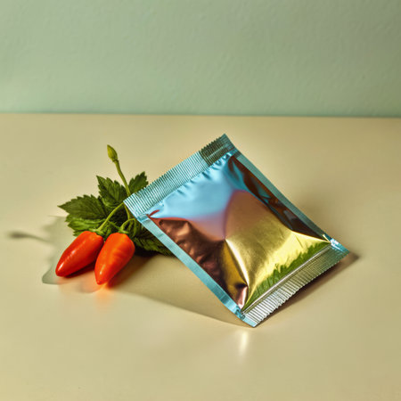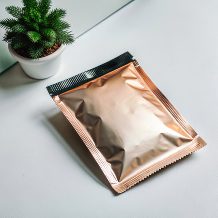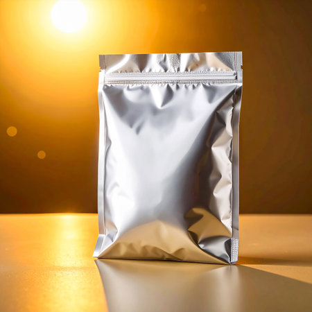 This image features shiny metallic packaging set against a vibrant background, ideal for showcasing modern product designs and inspiring creative marketing concepts.