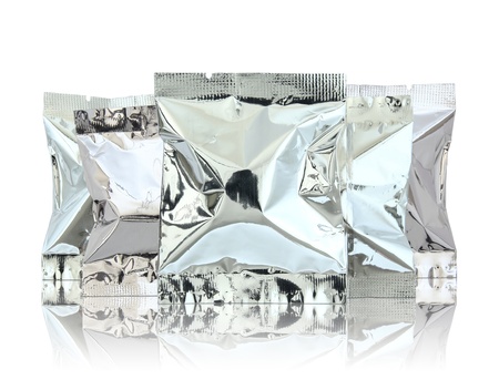 foil bags on white background