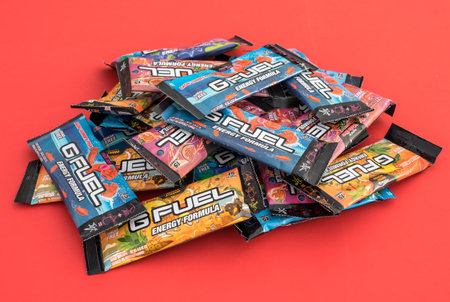 Morgantown, WV - 5 February 2021: GFuel energy drink is a favorite drink for egamers and on-line game players