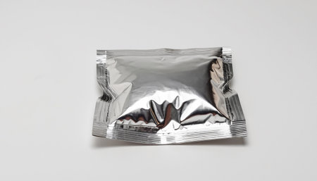 Silver foil packet isolated on white background