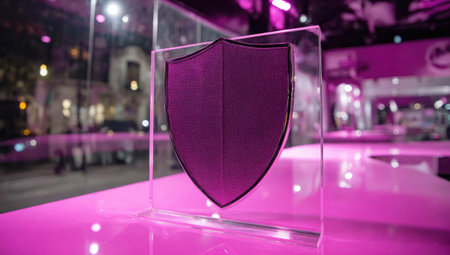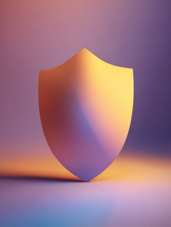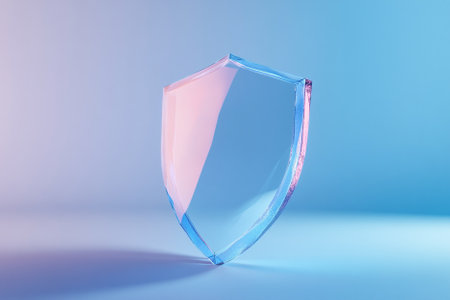 A conceptual representation of digital security showing a luminous shield symbol surrounded by soft neon lights in a futuristic design context
