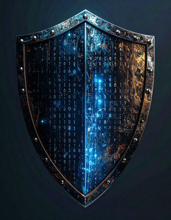 Digital shield represents cyber security law and its role in protecting information in a technology-driven world with digital textures