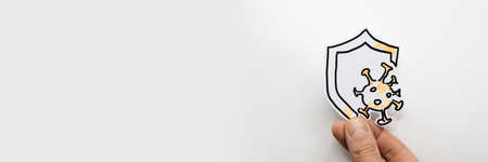 Drawn shield to protect against coronavirus icon in hands