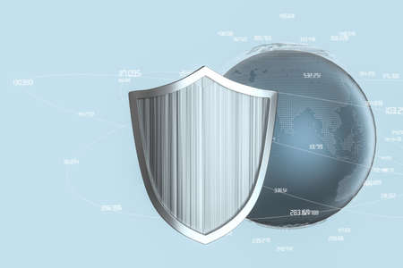 3d rendering, a defense shield with technological background, computer digital background