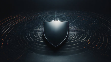 This image showcases a digital shield with intricate circuit patterns, glowing softly in a dark environment, symbolizing cybersecurity and modern technology innovations.