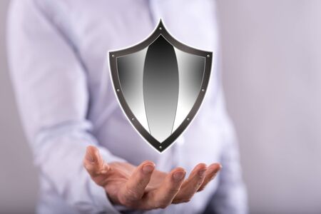 Protection concept above the hand of a man in background