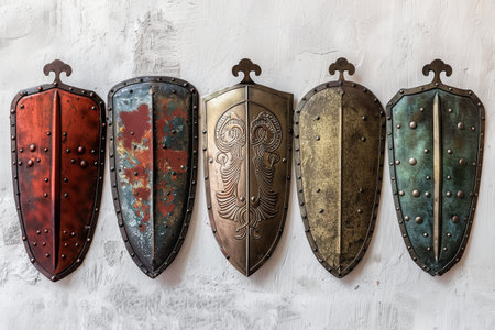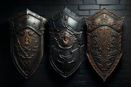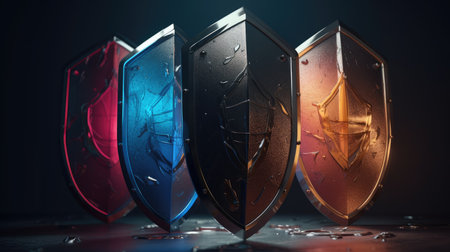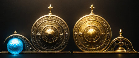 Elegant Dual Shield Design in Warm and Cool Tones - Ideal for Protective Themes and Artistic Decor Generative AI
