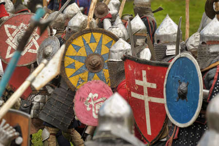 Russia, Priozersk 07,07,2013 Festival of historical reconstruction Russian fortress in Korela fortress. Knights in the field of fight.