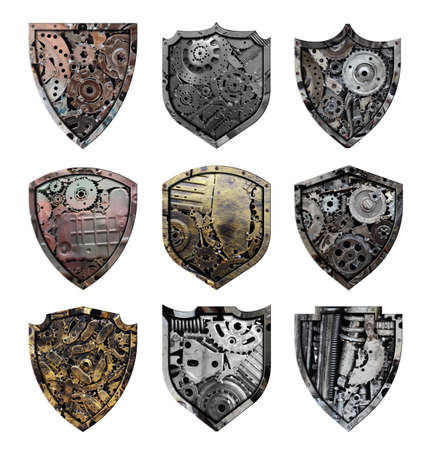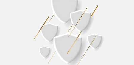 Blue And Gold Protection Shields, Security And Safety Insurance With A Shimmering Background