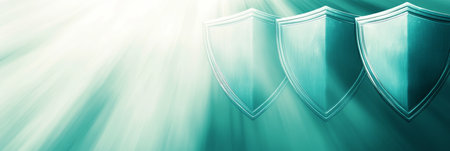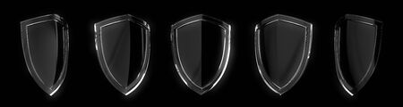 A row of gleaming, transparent shields stands as a formidable barrier, representing layers of advanced digital protection. This 3D rendering visualizes a robust cybersecurity system, a digital fortress safeguarding sensitive data against online threats with strength and resilience.
