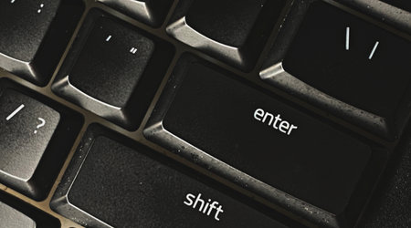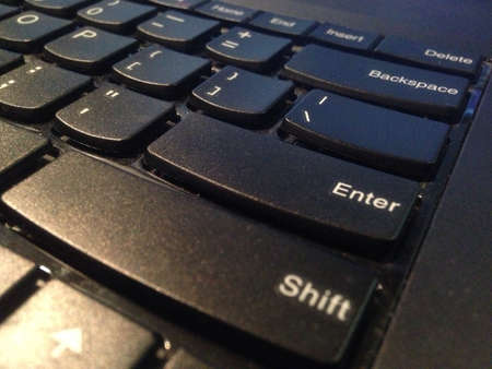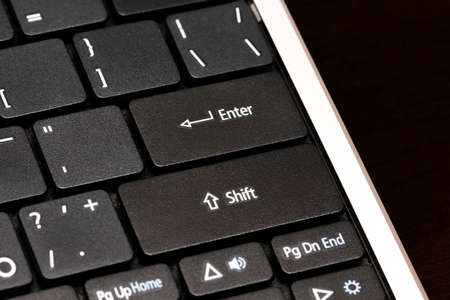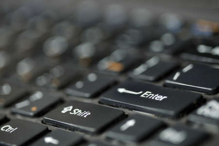 Black keyboard keys closeup. Macro shot of Enter keyboard button, pc hotkey, keystroke photo