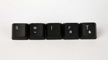 SWIFT messaging network is a component of the global payments system, text concept button on keyboard