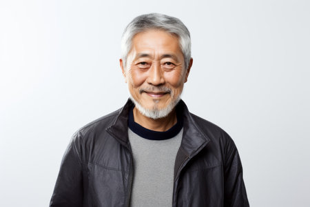 Portrait of an asian senior man on a white background.