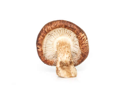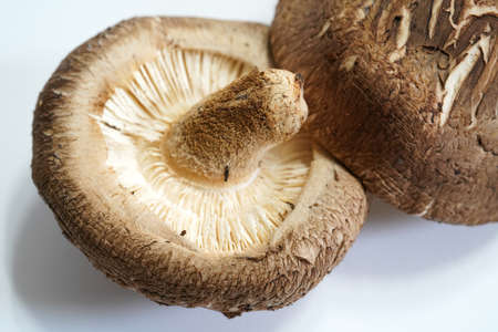 Close Up Fresh Shiitake Mushroom isolated white background. Selective Focus. (Lentinula edodes)
