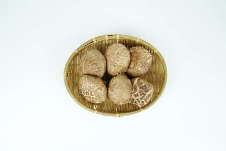 Dried Mushroom in a Basket on white background.