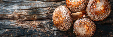 fresh shiitake mushrooms on a rustic wood table
