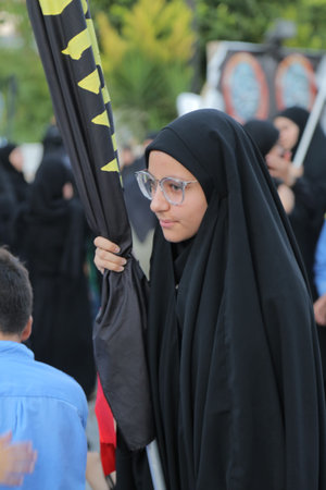 Istanbul, Turkey - October 11, 2016: Shia Muslim women mourn during an Ashura. Turkish Shia Muslims mourning for Imam Hussain. Caferis take part in a mourning procession marking the day of Ashura in Istanbul's Kucukcekmece district, Turkey on October 11,