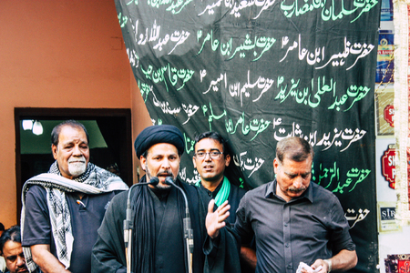 Varanasi India November 17, 2018 View of unknowns Shiite Muslims Imam speaking during the Ashura commemorations in the Arabian district of Varanasi