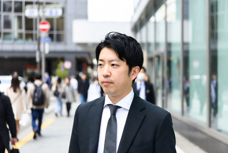 Japanese businessman walking outdoors - Asian man with elegant suit