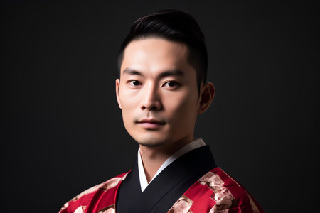 Portrait of a Samurai Warrior in Traditional Kimono Amid Cherry Blossoms for Cultural Celebration.