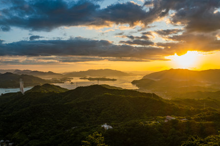 Sunset over the Seto Inland Sea Viewed from Takamiyama Observatory, Onomichi City, Hiroshima Prefecture, Japan