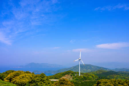 Beautiful blue sky and green and natural scenery of the sea in Kitanagato Coast Quasi-National Park