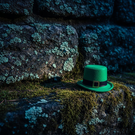 Leprechaun hat on a stone wall with green moss