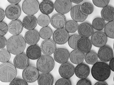 Vintage looking Hand with British Pound coins currency of the United Kingdom