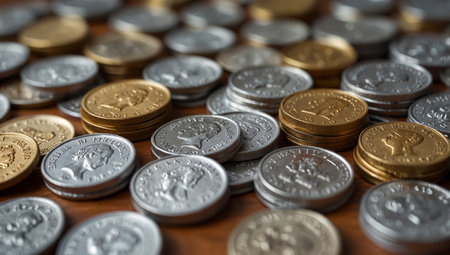 AI Generated. Background Scatter of Coins on a Dark Surface