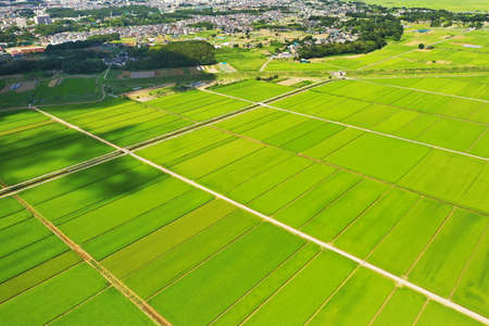 Paddy field in Abiko City taken as an aerial photograph