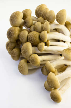 Isolated macro image of Korean edible Buna Shimeji mushrooms.