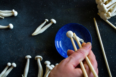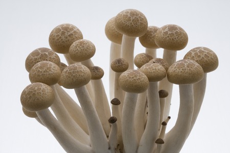 White and brown shimeji edible mushrooms native to East Asia, buna-shimeji is widely cultivated and rich in umami tasting compounds