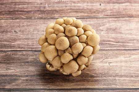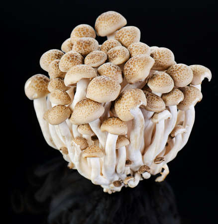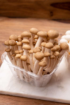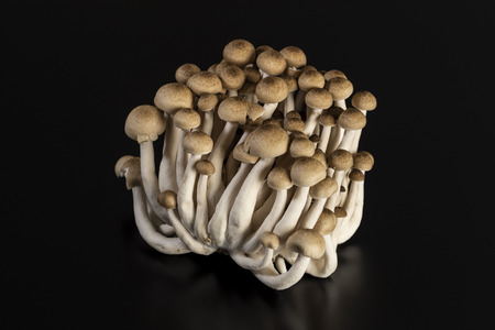 Fresh uncooked buna brown shimeji edible mushrooms from Asia, rich in umami tasting compounds such as guanylic and glutamic acid