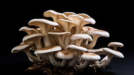 Cluster of oyster mushrooms on a dark background. Studio food photography. Vegan and vegetarian cuisine concept. Design for cookbook, food blog, restaurant menu
