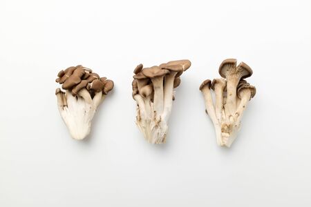 Oyster mushrooms on white background. Shimeji mushrooms.