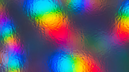 Vibrant light refractions creating a rainbow effect on a glossy surface with a bokeh background.