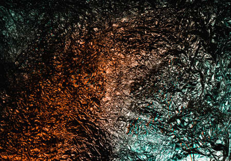 orange green grunge abstract crumpled aluminum, titanium shiny foil New Year, Christmas background