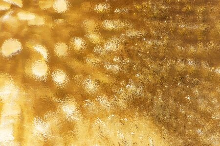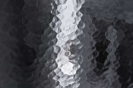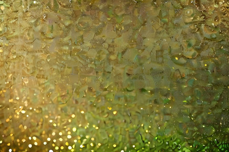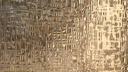 frosted surface of embossed opaque glass with a geometric abstract volumetric pattern, illuminated by uneven yellow light