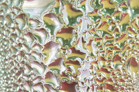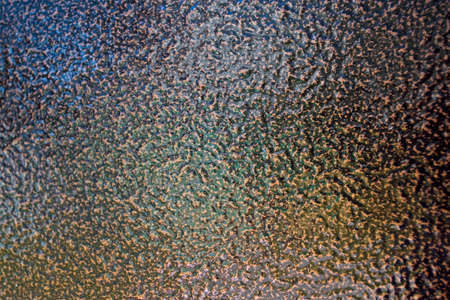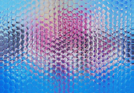 Fluted glass with backlight. Beautiful multicolored refraction of light. Abstract background. Self-adhesive film. Ribbed glass surface. Embossed glass background.