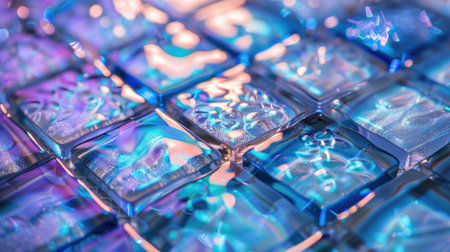 Glass mosaic with holographic effect. Trendy tiles fashionable geometric shapes banner