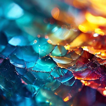 An abstract background featuring iridescent fragments that shimmer with vibrant colors. This eye-catching design is perfect for various creative projects.