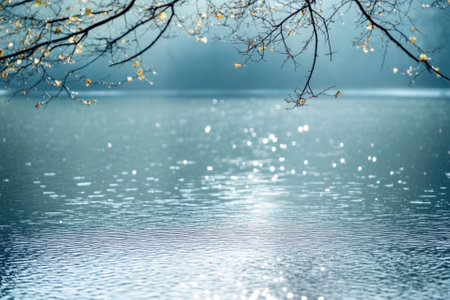This image captures the tranquility of a calm water surface, featuring gentle ripples and reflections of the sky at dawn, perfect for evoking peace and serenity.