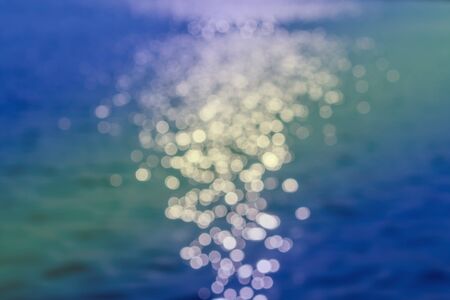 Abstract nature summer ocean sunset sea background. Small waves on water surface in motion blur with bokeh lights from sunrise. Holiday, vacation and recreational background concept.