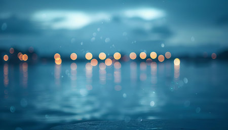 Muted blue bokeh lights, creating a sense of calm and tranquility like the ocean at dusk