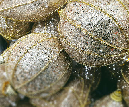 Gold Christmas Bauble. Beautiful Glitter Gold Christmas Balls Close-Up