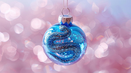 Close-up of a New Year's bauble with a sleek snake silhouette, set against a minimalist background in Very Peri color.