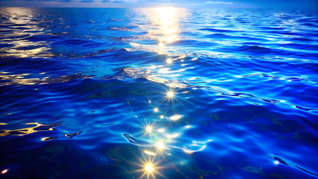 Sparkling blue water surface reflecting sunlight creating a serene aquatic atmosphere concept