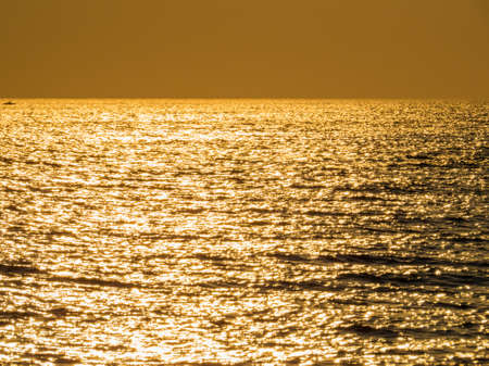 Sea water surface with golden glowing sun reflections. Abstract nature background.
